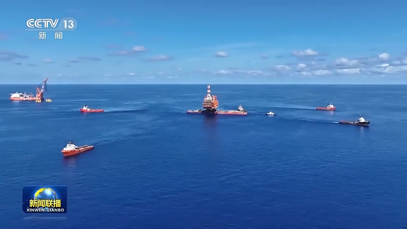 中国海油深圳分公司深水工程建设中心总经理 刘华祥:作业过程相当于开着一个长度超过220米、宽度40多米,装载10000辆小汽车的超级卡车,在风浪流不断变化影响的海面上进行倒车入库,且两侧边缘误差不能超过10厘米,对设计计算精确性、动力定位系统的可靠性、操作人员的技术水平均提出极大挑战。