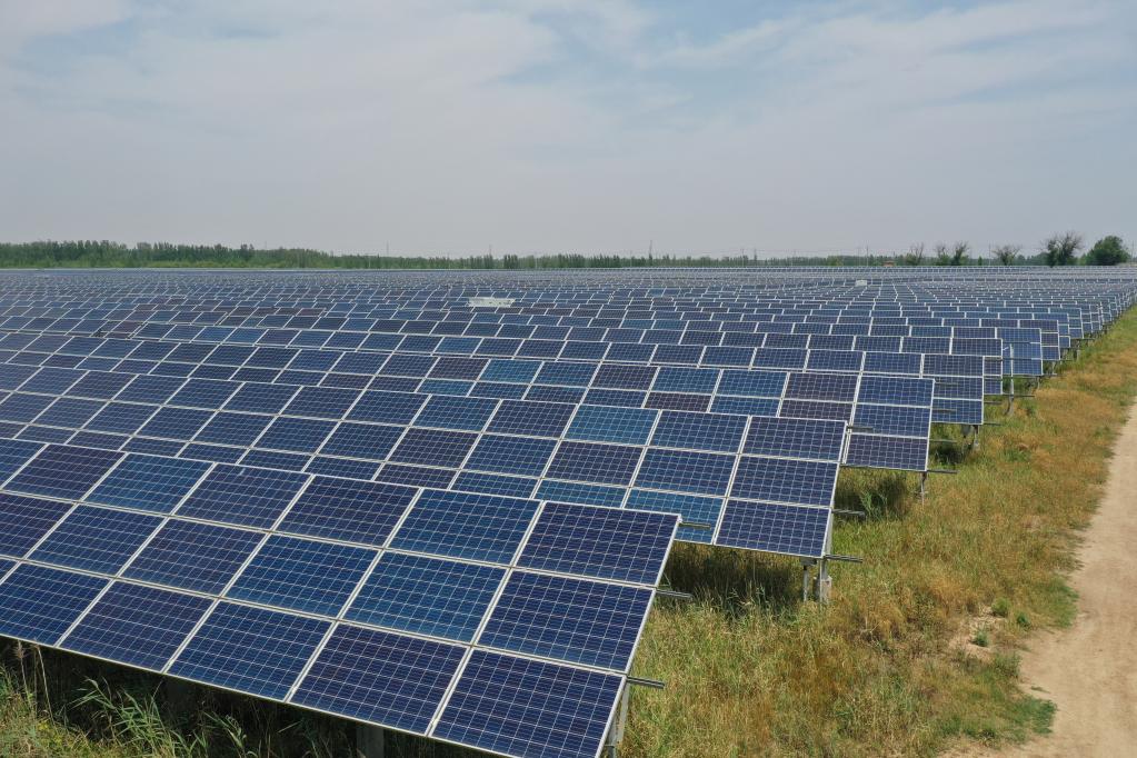 新华社济南5月14日电(记者王志)在山东省聊城市茌平区肖家庄镇算子李村,占地1200亩的鑫佳源光伏电站内,一排排蓝色的光伏电板一眼望不到头,在阳光照射下正源源不断地产生清洁电能。
