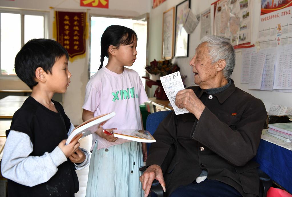 ↑5月13日,叶连平给孩子们上英语辅导课。 新华社记者 刘军喜 摄