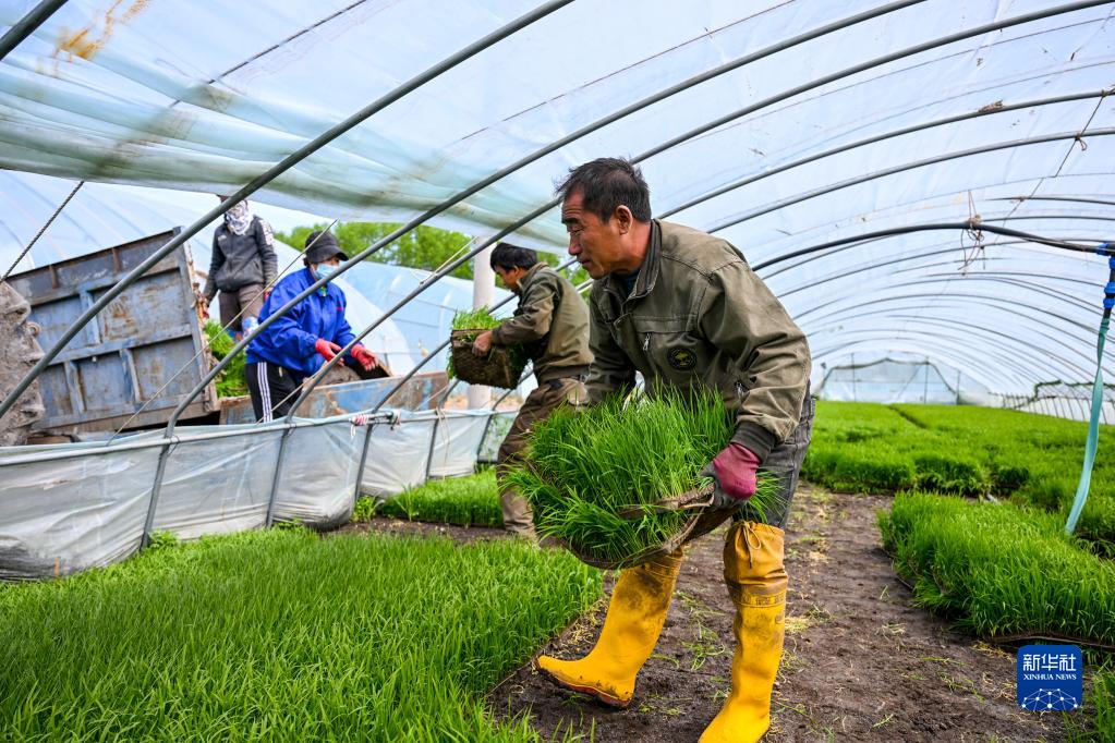 随着气温逐渐升高,内蒙古兴安盟境内的水稻田迎来插秧期,当地农民抢抓农时,田间一派繁忙景象。
