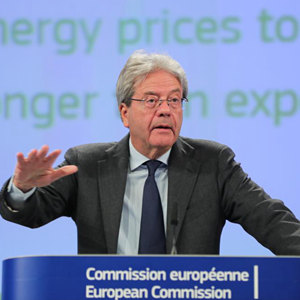 5月15日,欧盟委员会负责经济事务的委员真蒂洛尼在比利时布鲁塞尔出席新闻发布会。新华社记者郑焕松摄