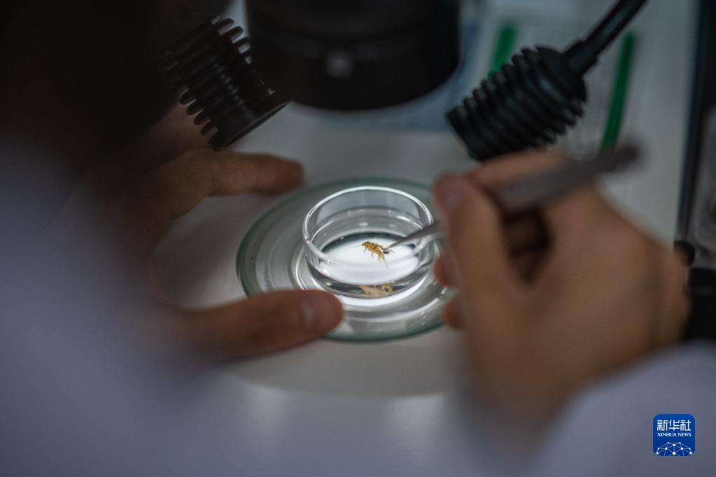 5月15日,在长江流域生态环境监督管理局实验室,监测人员对采集到的底栖动物样品进行鉴定。