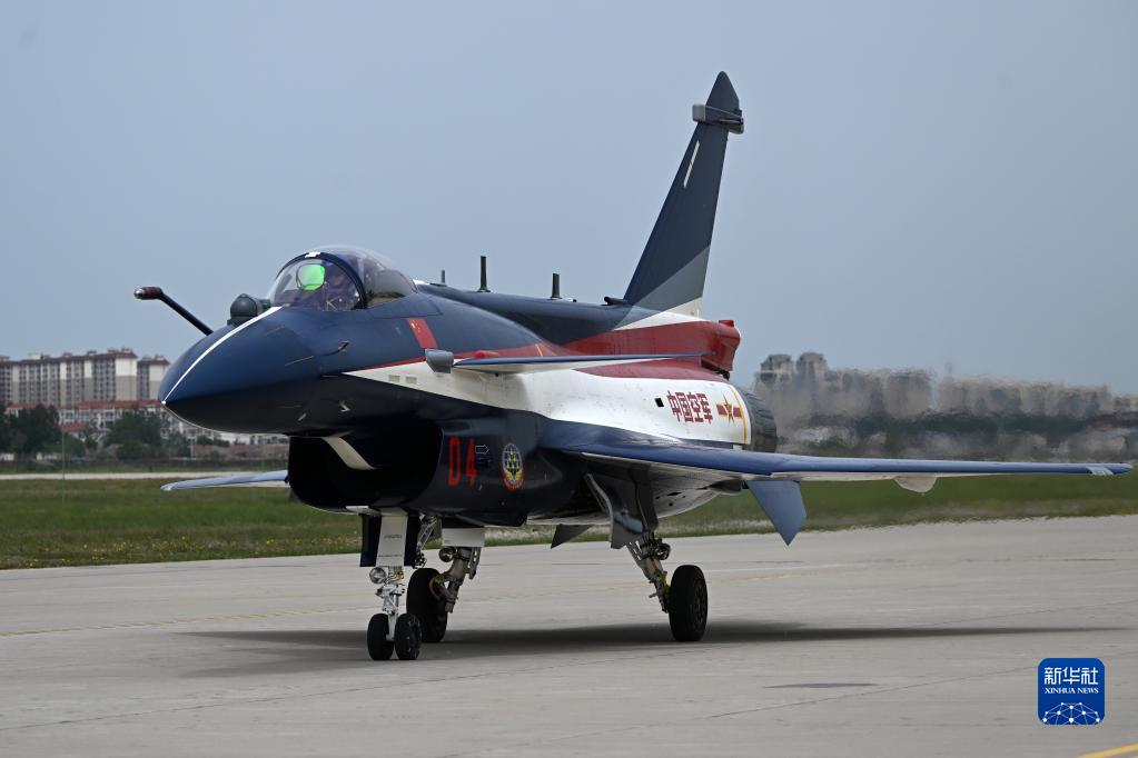 空军八一飞行表演队一架歼-10C表演机滑向起飞线,准备开展训练(5月6日摄)。新华社发(余红春 摄)