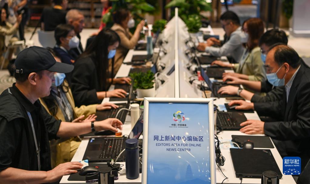 5月16日,记者在中国-中亚峰会新闻中心工作。