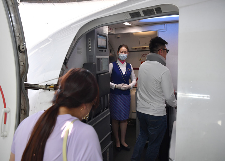 5月13日,旅客登上西安-乌鲁木齐-阿什哈巴德首趟航班。当日,西安至土库曼斯坦首都阿什哈巴德的国际航线首飞。5月18日西安还将首开至塔吉克斯坦首都杜尚别的国际航线。新华社记者 邵瑞 摄