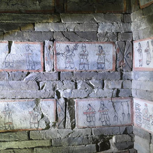 在位于甘肃省嘉峪关市的嘉峪关魏晋墓六号墓中,一幅幅色调明快、线条流畅、生动形象的砖画讲述了1700多年前魏晋时期的人们宰羊切肉、用叉烤肉、宴请宾客的场景。