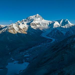 绒布冰川分东、中、西三条支流。世界最高峰脚下,冰塔林延绵数公里,壮丽秀美,让人叹为观止。