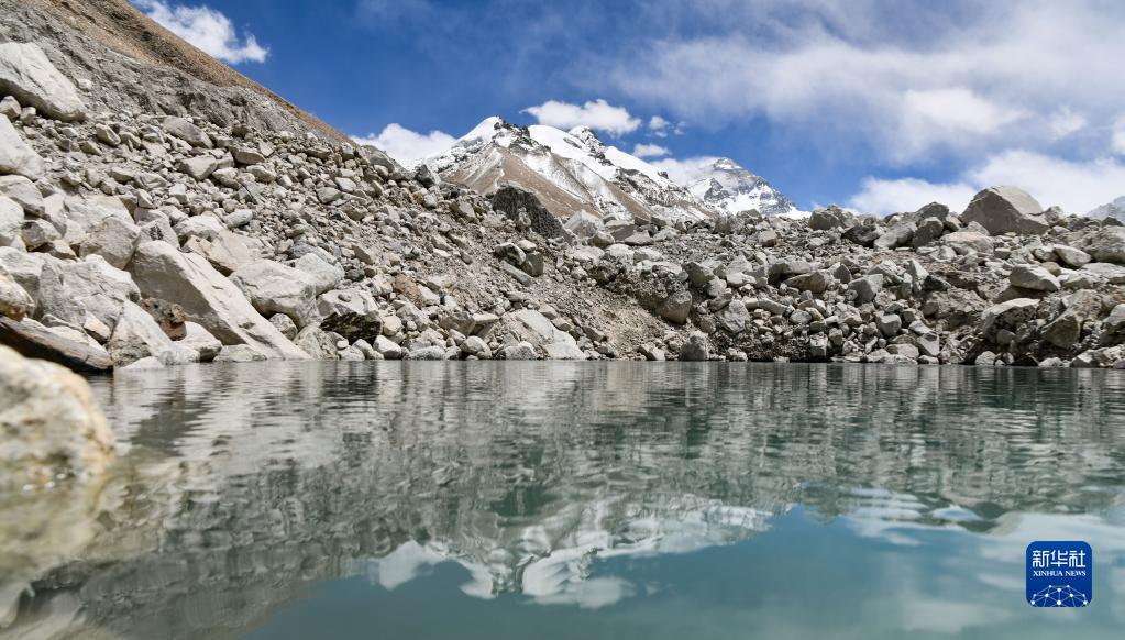 这是绒布冰川融水形成的湖泊(5月12日摄)。