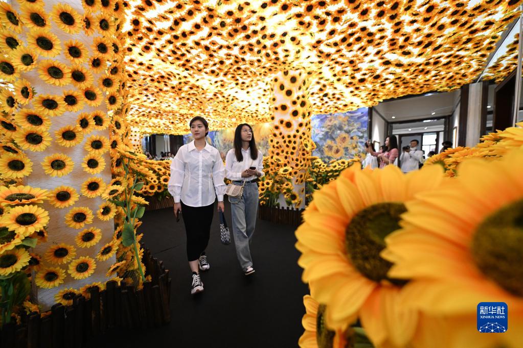 5月16日,观众在天津数字艺术博物馆“梵高的世界”全景数字艺术互动大展预展上参观。
