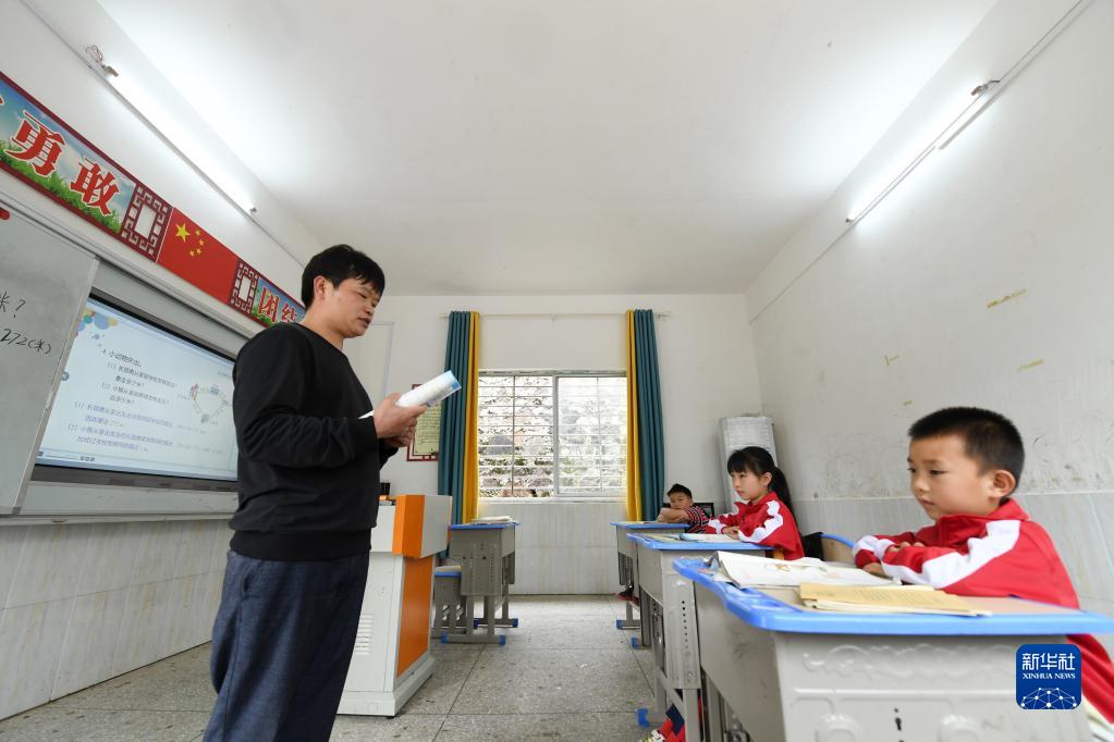 5月17日,在广西灵川县海洋乡中心岐教学点,蔡教宏在给学生上课。