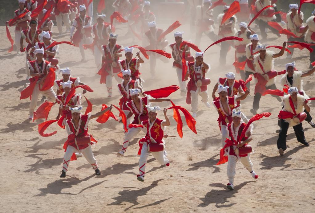 2018年5月25日,演员在景区内表演安塞腰鼓。新华社记者邵瑞 摄