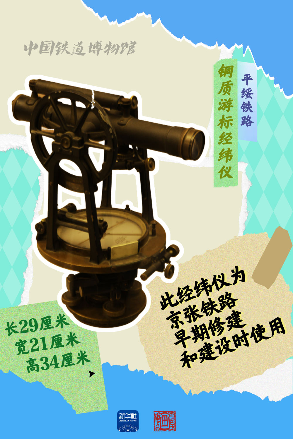 这件平绥铁路使用的铜质游标经纬仪,为京张铁路早期修建和建设时使用。该经纬仪制作精良,在当时属于具有较高科学技术水平的设备。2009年张家口车务段将其捐赠给中国铁道博物馆正阳门展馆。