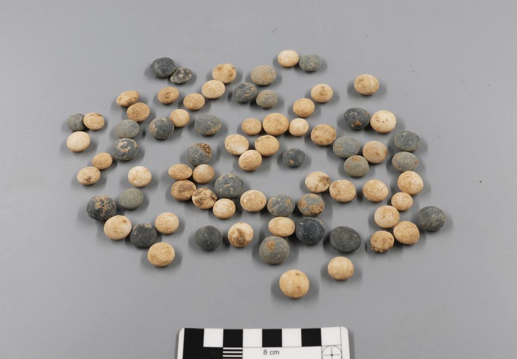 国家文物局公布的在西藏自治区当雄墓地出土的石质黑白围棋子(国家文物局供图)