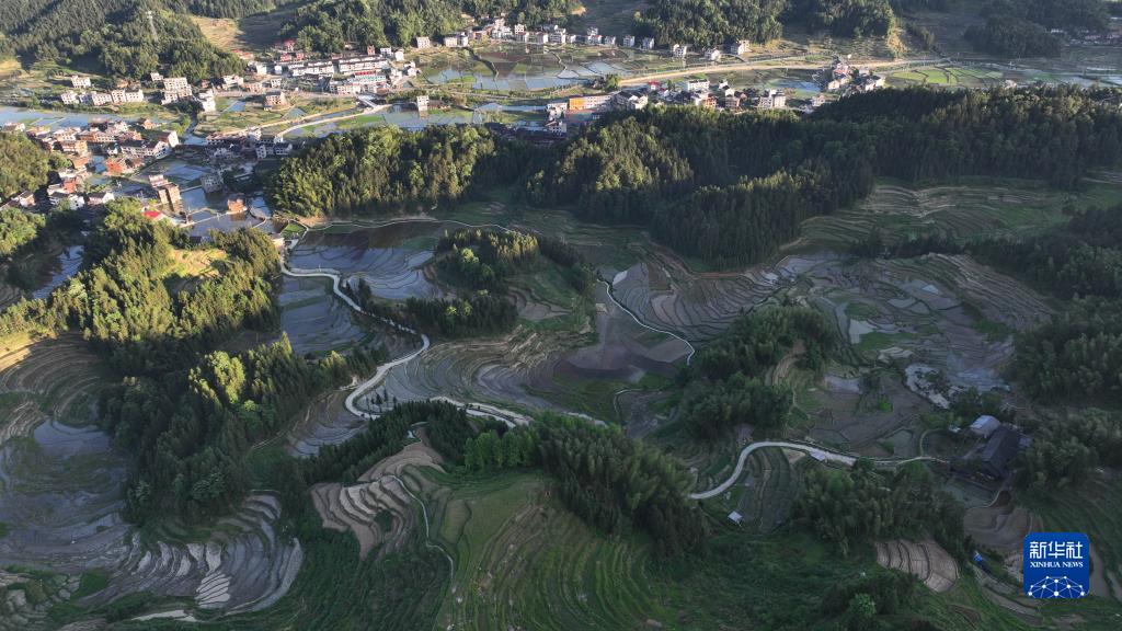 近日,湖南省娄底市新化县紫鹊界梯田蓄水备耕,水影天光如诗如画。