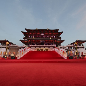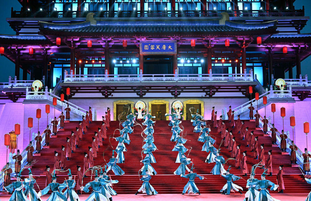 大唐芙蓉园楼阁巍峨,流光溢彩,美轮美奂。
