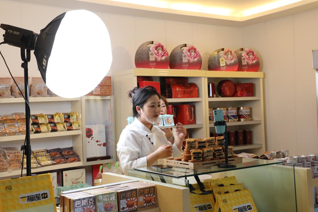 圣士公司董事长王有刚自嘲是“起死回生”的老板。2019年,资金链断裂的圣士被迫停产,当年企业纳税额仅58元。王有刚说:“烘焙行业原来以线下门店销售为主,扩张资金压力很大。自从搭上直播电商快车,节省了成本,‘蛋月烧’月饼一天就能卖出去10多万块,是我们厂的爆款产品。”