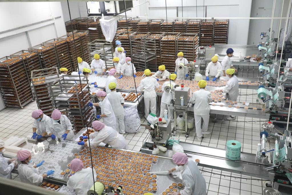 “‘蛋月烧’这蛋皮特别软,馅料特别足。一口下去,不油不腻。”镜头前,活力十足的主播正在带货月饼,而她的直播间就在生产车间旁,背后玻璃窗内是高效运转的拌料机、烘焙箱、包装机。