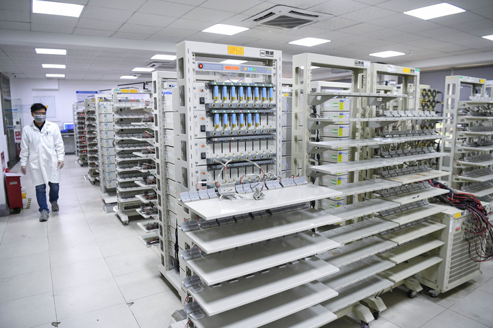 这是3月3日在广州天赐高新材料股份有限公司实验室拍摄的正在运行的高性能电池检测系统。新华社记者邓华 摄