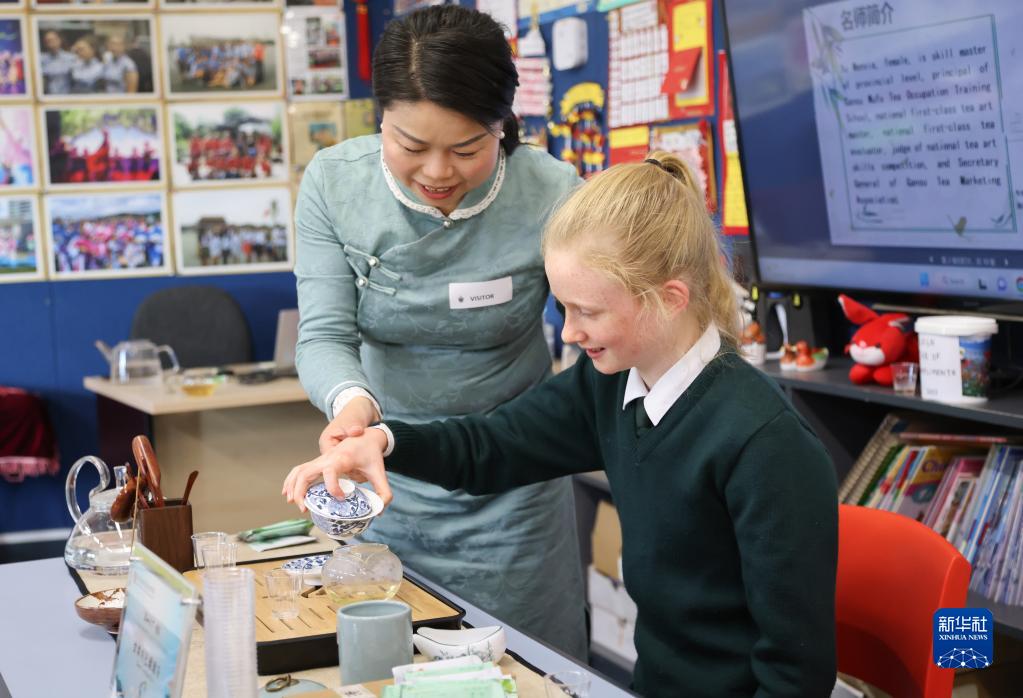 在惠灵顿百年名校——惠灵顿男子高中和女子高中,常淑淇和另一位中文教师志愿者刘畅为学生们带去了中国茶艺美学课。在优美动人的乐曲中,学生们领略了中国茶艺的独特魅力和传统礼仪之美。