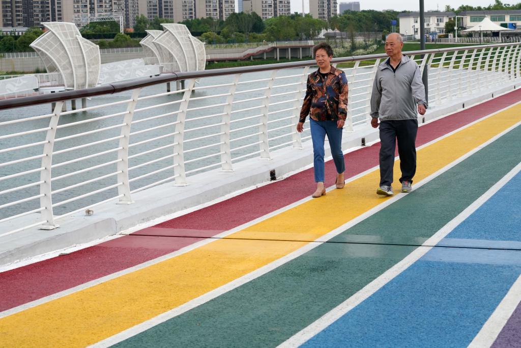 5月17日,市民在小溪港渔咀公园散步休闲。新华社记者马宁摄