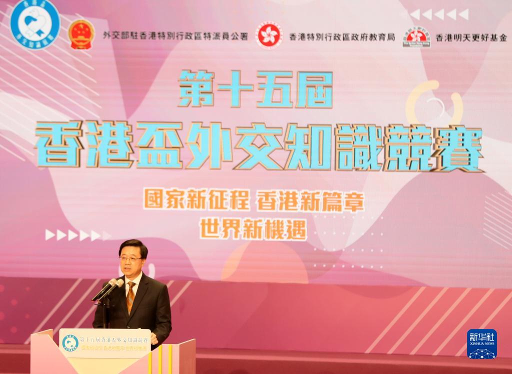 香港特别行政区行政长官李家超致辞表示,学习外交知识对建立和巩固香港青少年国民身份认同和国家意识起着重要作用。希望同学们继续多关心和认识国家发展、世界格局,好好装备自己,成为爱国爱港、自强不息、具备国际视野的新一代,日后在国际舞台上发挥所长,贡献中华民族伟大复兴。