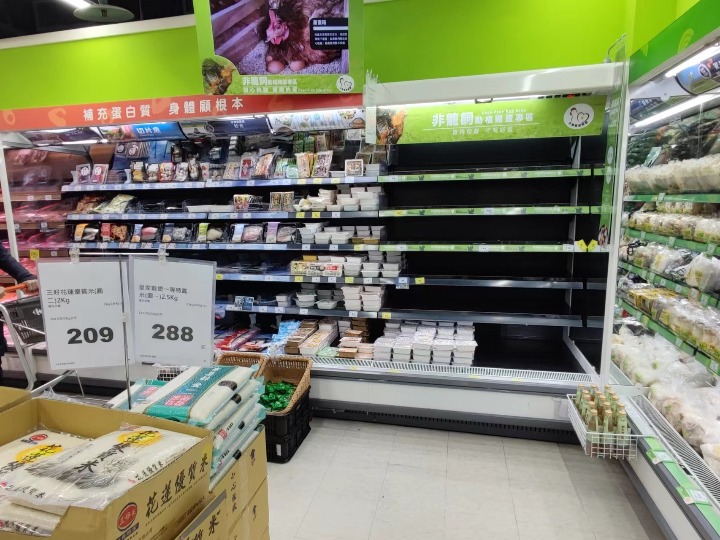 2月22日,在台湾台北的一家超市内,鸡蛋货架上空空如也。新华社记者 黄扬 摄