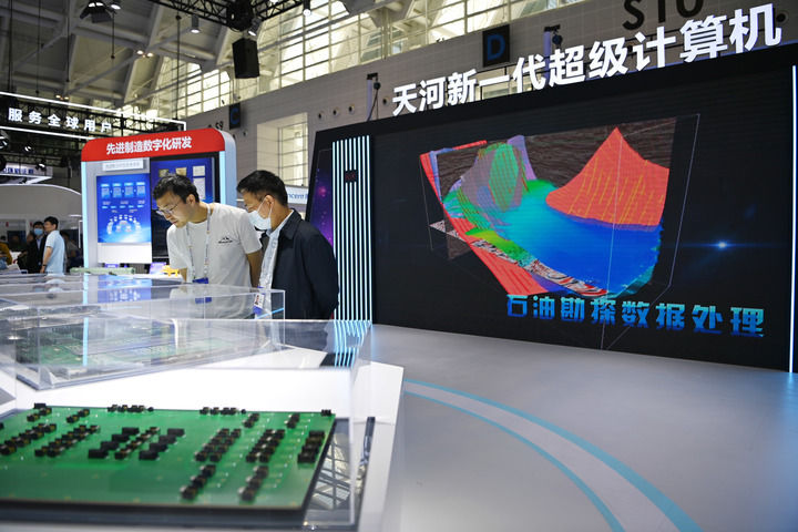 5月18日,观众在第七届世界智能大会智能科技展上参观国家超算天津中心展区。新华社记者 李然 摄