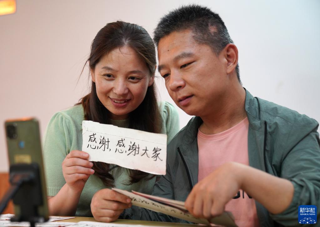 5月16日,谷穗(左)在非遗传习基地和学徒一起直播。