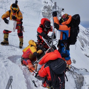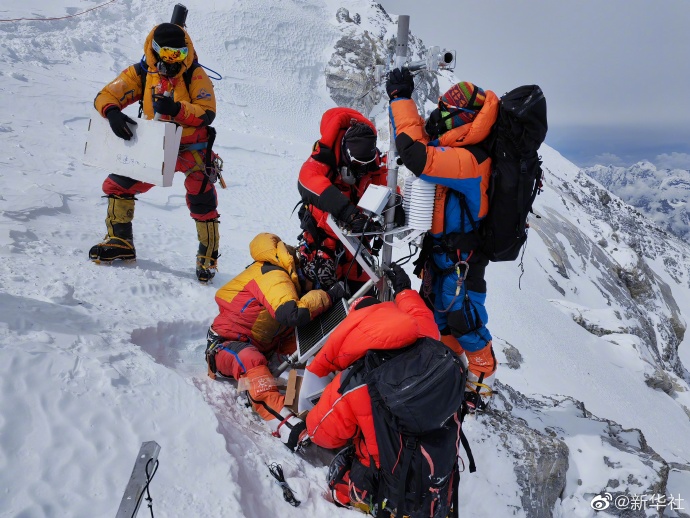 23日凌晨3时,13名科考登顶队员从海拔8300米的珠峰突击营地出发,历经8小时攀登,11时许抵达8830米的世界海拔最高自动气象观测站。固定钢丝绳索,更换蓄电池,安装风速风向传感器……经过约1小时紧张工作,自动气象站维护升级工作全部完成。12时许,4名队员等待气象站数据传输,9名科考队员向峰顶发起冲击。(记者:田金文 聂毅 陈尚才)