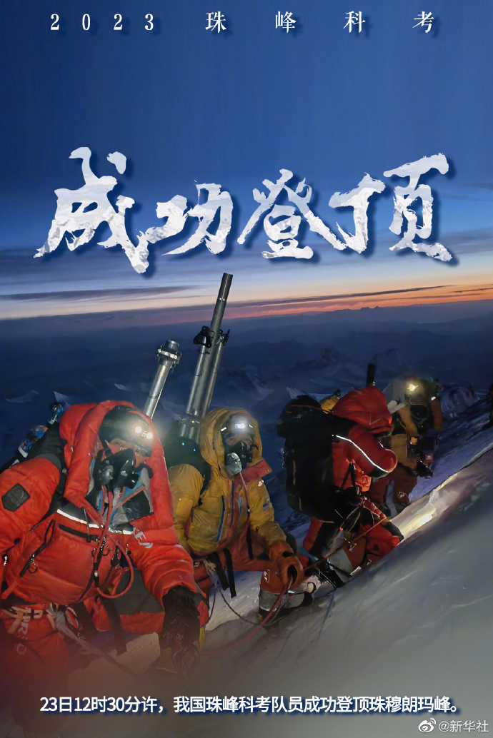 这是我国珠峰科考继2022年之后,再次突破8000米以上海拔高度。当日,科考队员在珠峰峰顶利用科学仪器,采集珠峰峰顶的雪冰样品,用于分析气候环境指标。