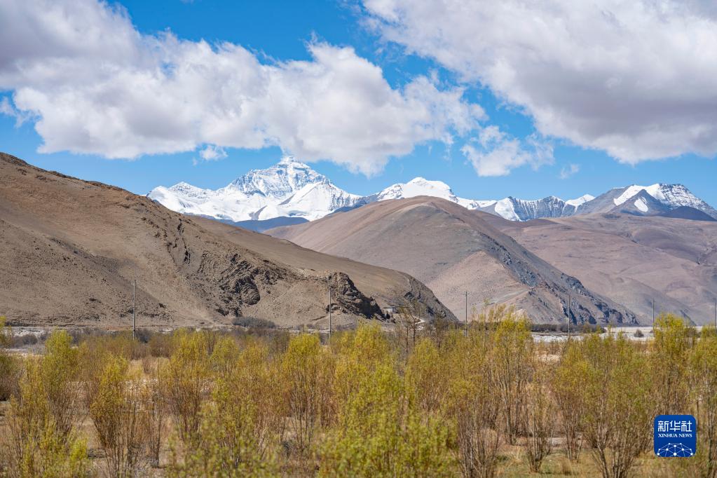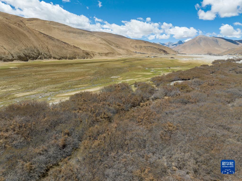 这是在珠峰国家级自然保护区内拍摄的沙棘林和湿地(5月25日摄,无人机照片)。新华社记者 孙非 摄