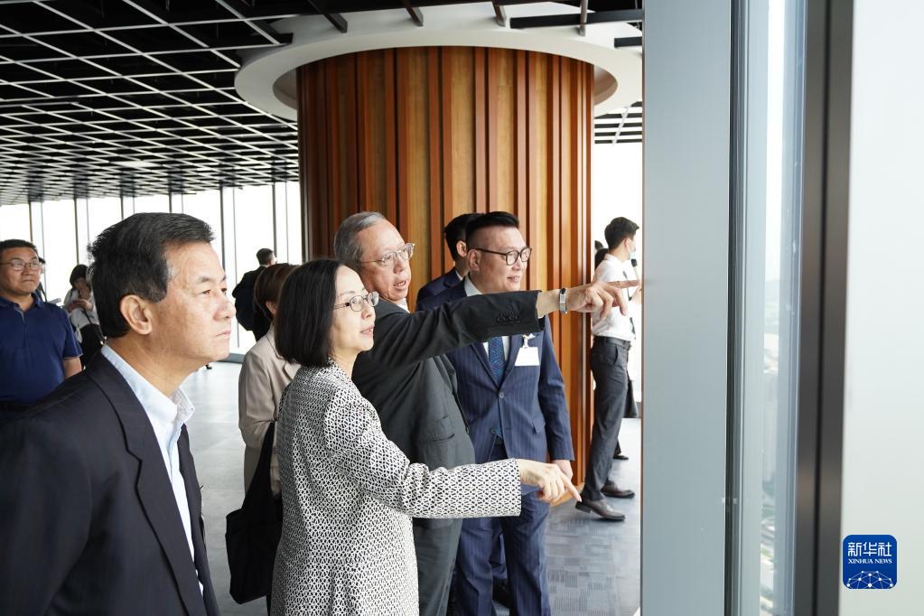 5月22日,考察团在珠海市中交汇通横琴广场参观。新华社发
