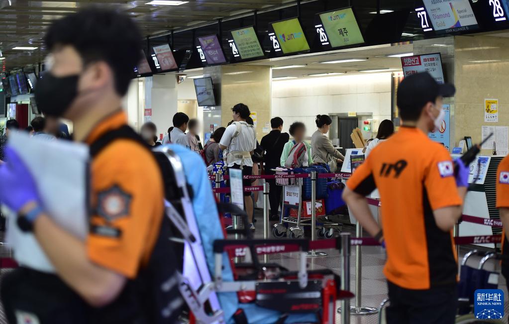 这是5月26日拍摄的韩国大邱机场值机区域。