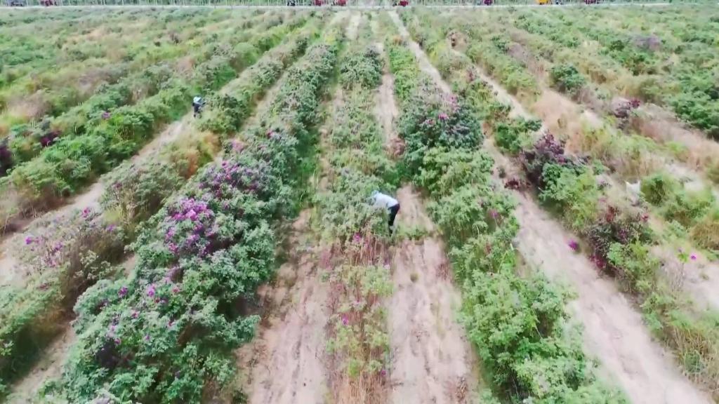 在于田县奥依托格拉克乡,近万亩大马士革、丰华、紫枝、小叶玫瑰等230万株不同品种的玫瑰花竞相开放,争奇斗艳,百余名农民正在花田里忙着采摘玫瑰花。玫瑰花在于田县已形成了从培育、种植、采摘到加工、收购、生产的完整产业链,玫瑰花产业已成为当地农民增收致富的重要产业之一。