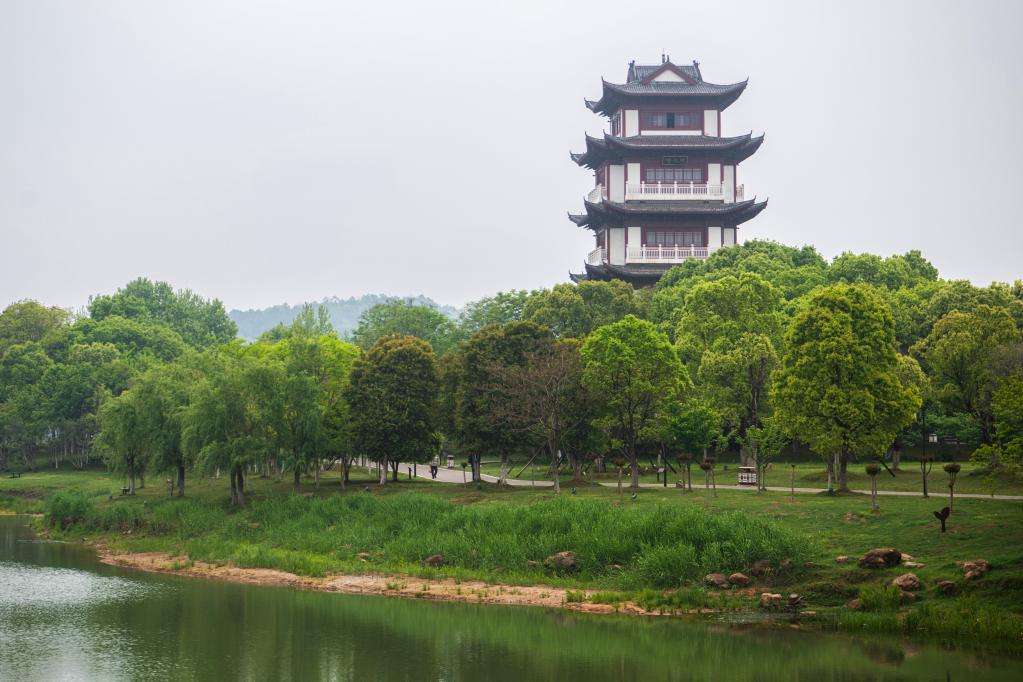 坐落在二乔公园里的双凤楼(无人机照片)。新华社记者伍志尊 摄