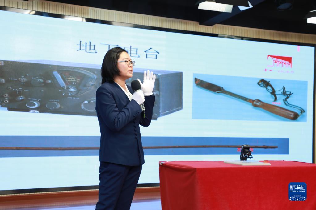 中共一大纪念馆工作人员带着秦鸿钧烈士使用过的柯达照相机等走进徐汇区第一中心小学,开展文物藏品进课堂活动(2022年2月28日摄)。
