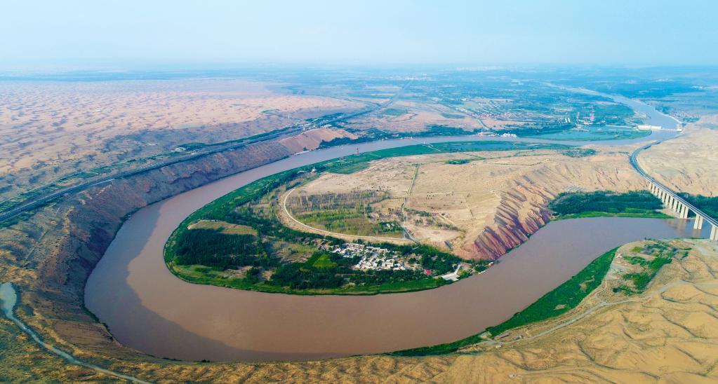 黄河与腾格里沙漠在沙坡头相遇。新华社记者 王鹏 摄