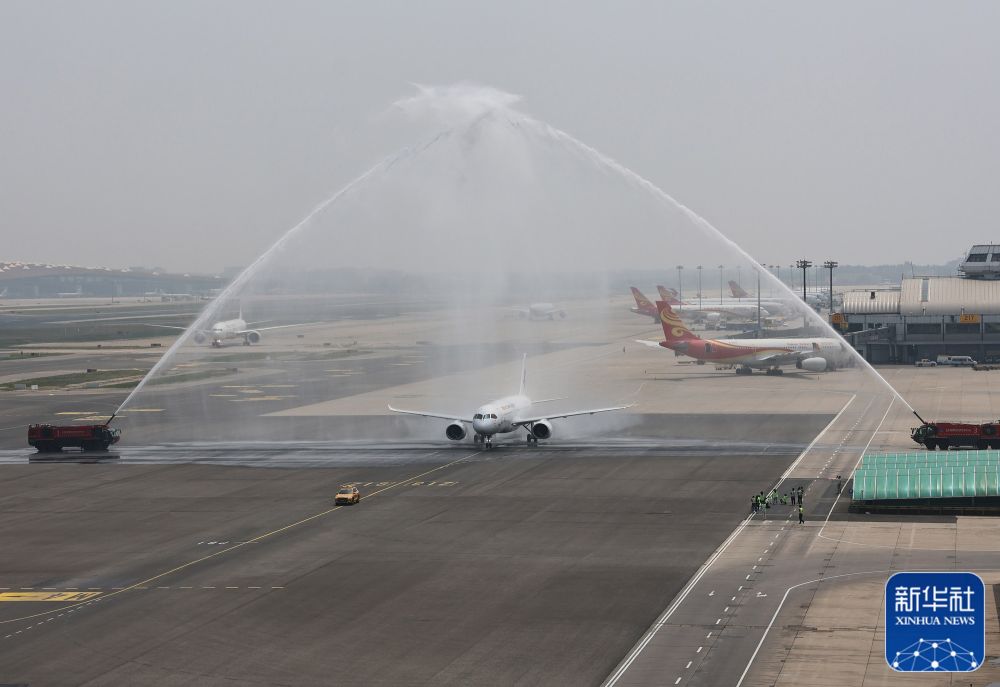 5月28日,C919首个商业航班东航MU9191在北京首都国际机场平安降落。新华社发(魏萌摄)
