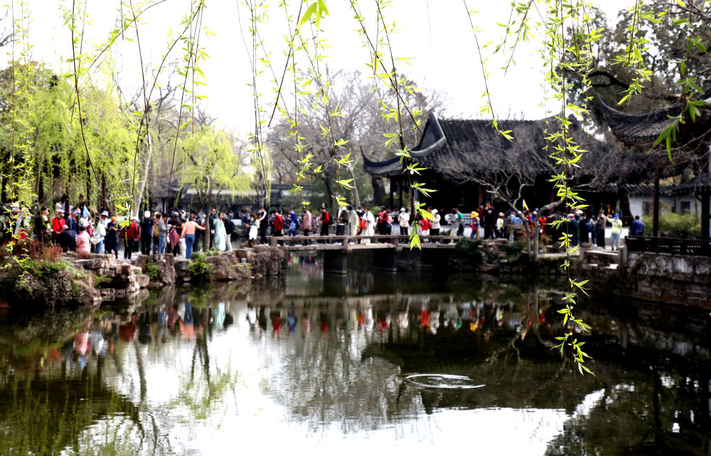 游客在江苏省苏州市古典园林拙政园观光游玩(2023年3月15日摄)。新华社发(杭兴微 摄)