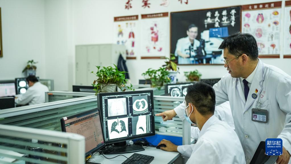 贵州省人民医院医学影像科主任医师在指导规培医生写作医学影像报告(5月24日摄)。