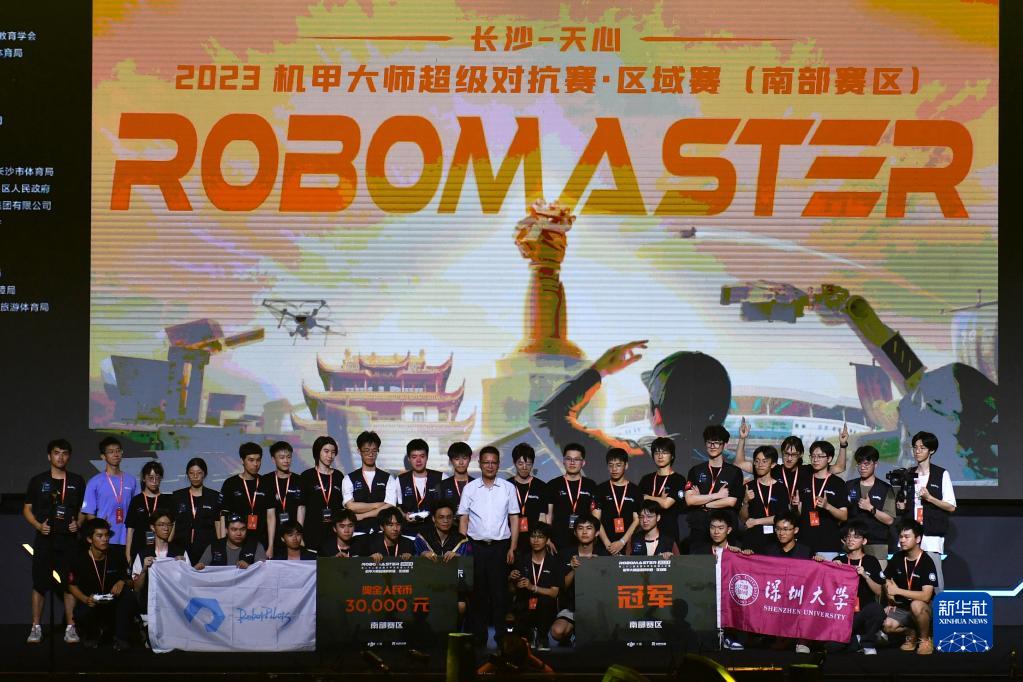 当日,经过4天的角逐,RoboMaster2023机甲大师超级对抗赛·区域赛(南部赛区)在湖南省长沙市贺龙体育馆落幕,深圳大学RobotPilots战队获得冠军。本次比赛共有来自全国的32支高校战队参赛,大连交通大学TOE战队获得亚军,华南理工大学华南虎战队获得季军。