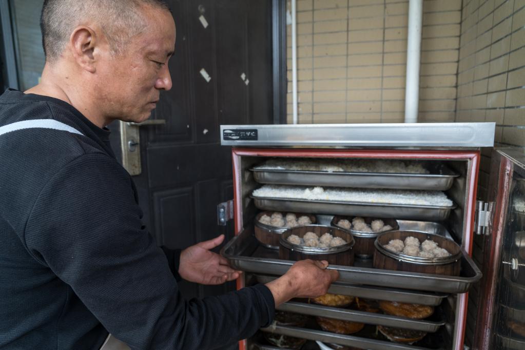 在成都市天府新区正兴街道官塘村,李云昌在准备菜品(4月25日摄)。新华社记者 唐文豪 摄