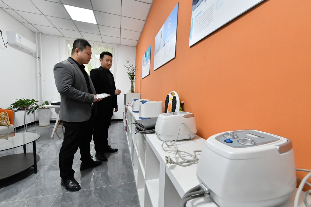 鑫创医疗器械产业园内入驻企业产品展示区。新华社记者 孙凡越 摄
