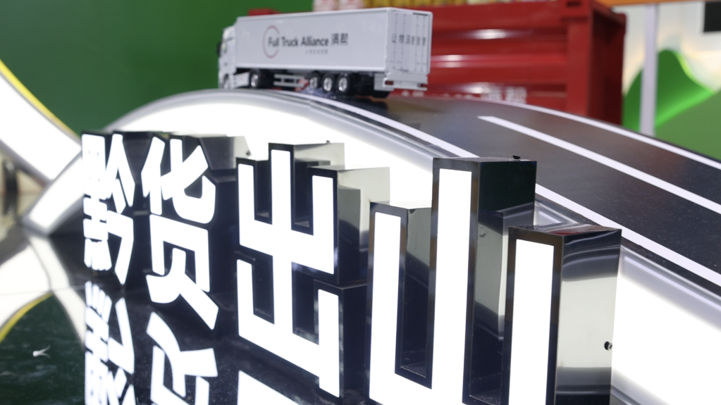 大货车开进数博会现场?其实背后展示的是智慧物流平台帮助货主高效找车、司机快速找货,减少货车空驶及配货等待时间,提升公路运输效率。