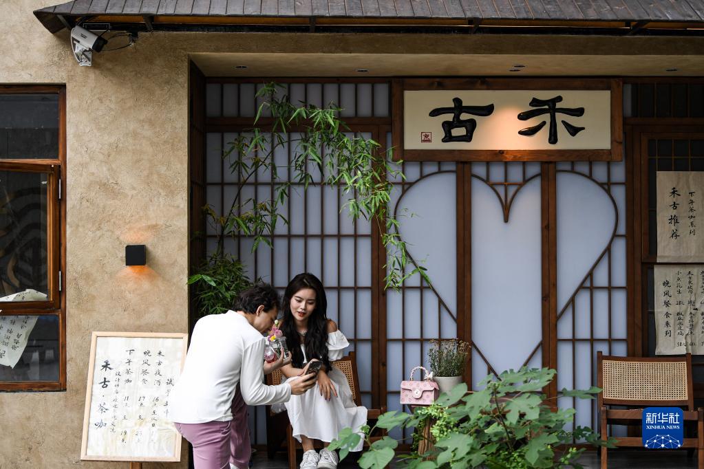 5月28日,游客在郑州记忆·油化厂创意园内参观游玩。