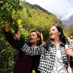 新华社拉萨5月29日电(记者刘洲鹏 刘文博 张汝锋)一簇簇野生大花黄牡丹在山间的晨雾中迎风绽放,嫩黄花冠挂着细密的水珠,娇艳欲滴。28日,在西藏林芝的米林市南伊珞巴民族乡扎贡沟景区内,第十五届黄牡丹藏医药文化旅游节拉开帷幕。