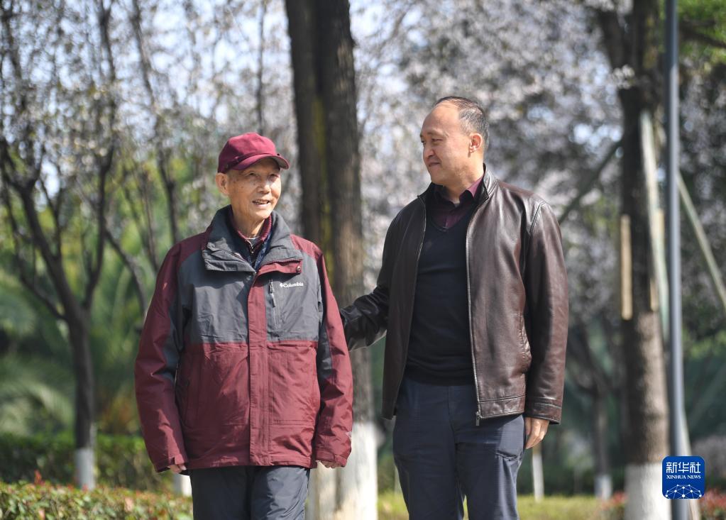 3月3日,在中国核动力研究设计院内,魏昌武(右)、刘艳阳师徒二人在散步交流。