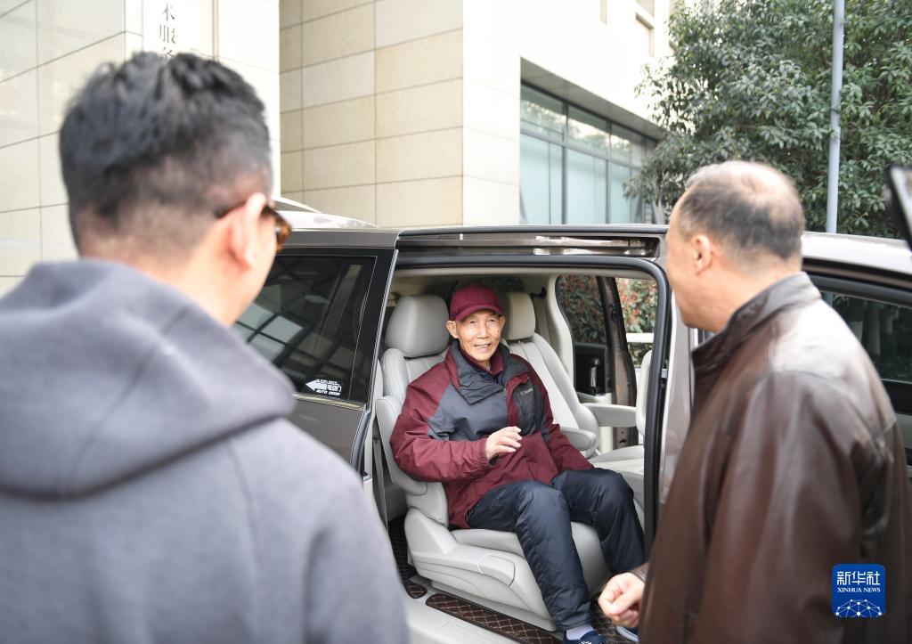 3月3日,分别时,已上车准备离开的魏昌武(中)在嘱托刘艳阳(右)相关工作。