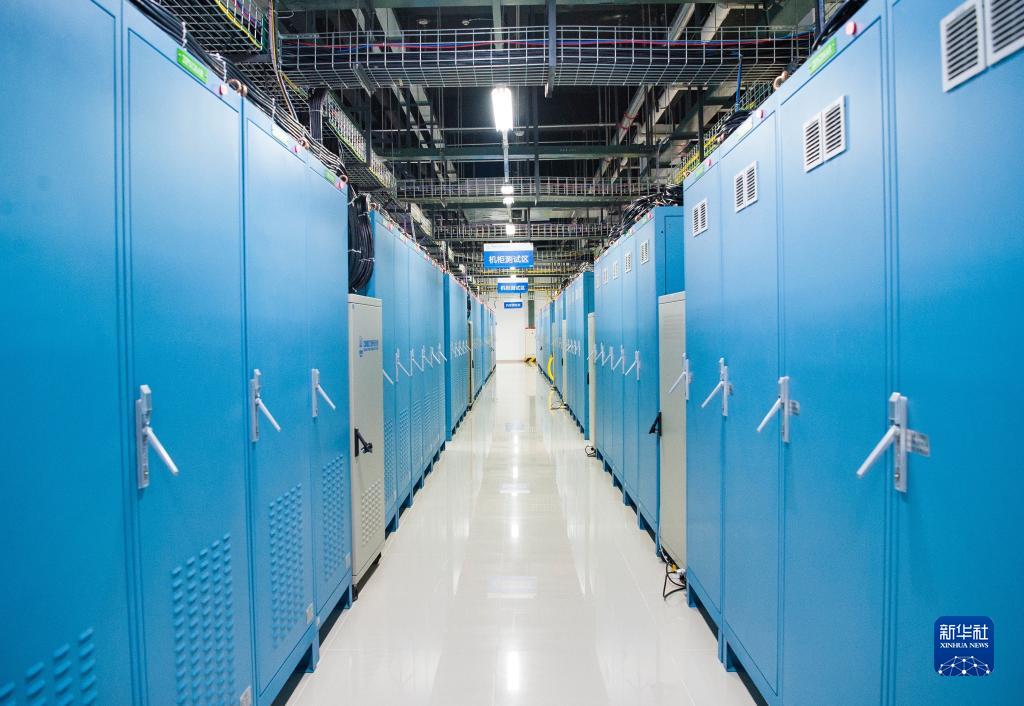 这是5月26日拍摄的龙鳞系统生产基地内摆放的机柜。
