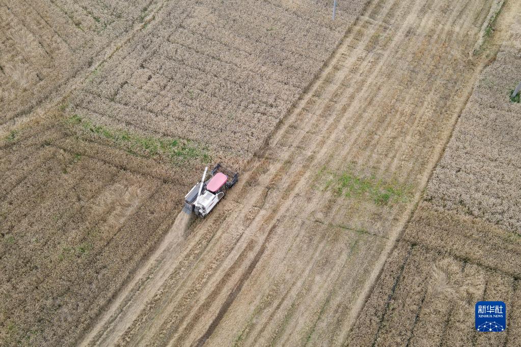 最近,在长江沿岸的安徽省芜湖市繁昌区,小麦陆续迎来丰收,当地农民抢抓时节收割小麦,田间地头一派繁忙景象。